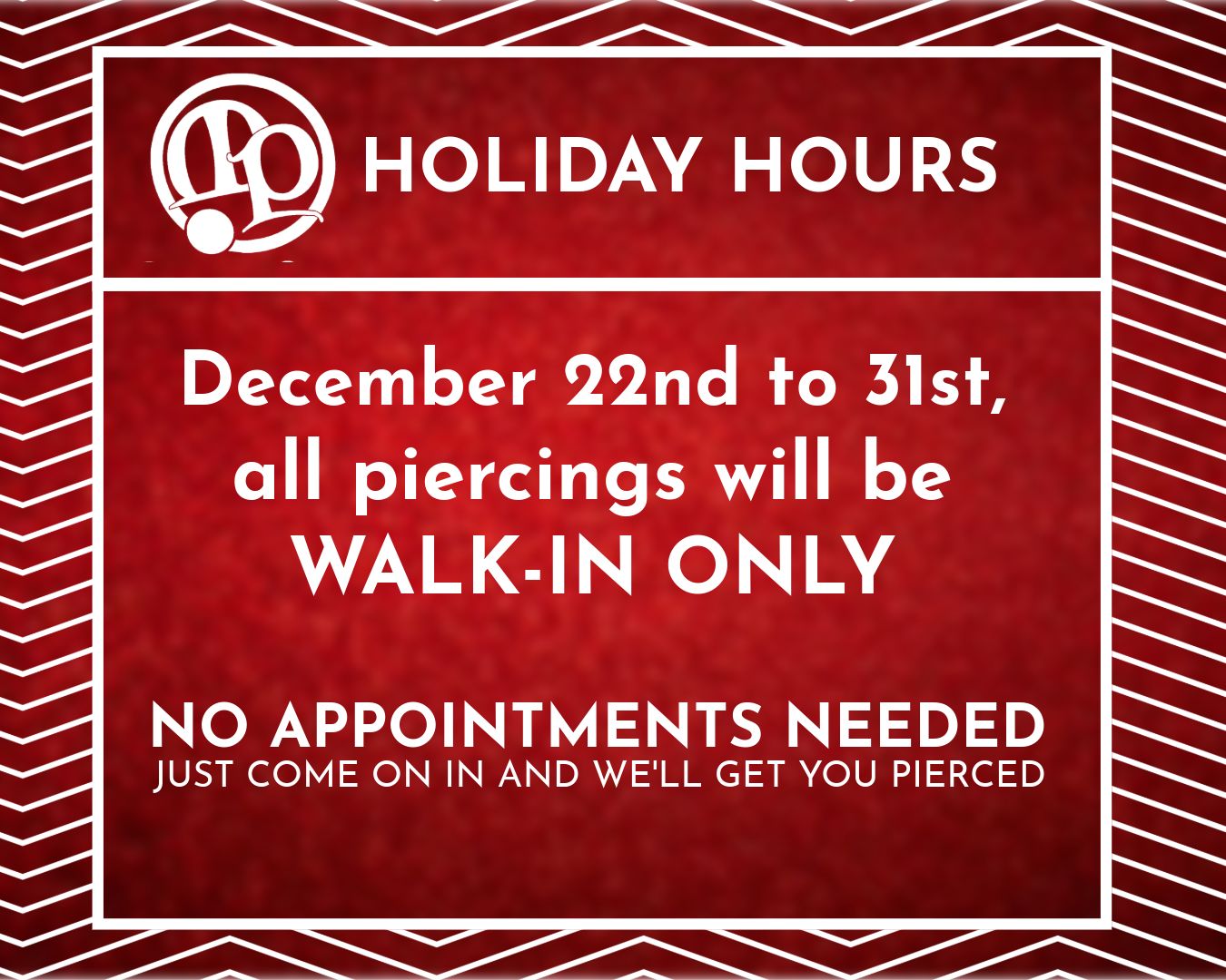 On Saturdays and Sundays, we have additional piercers for walk-ins.